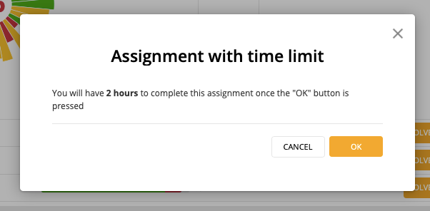 Please note that now your instructor can set a time limit to certain assignments and exams. Below is what you would see when you start an assignment with a time limit.