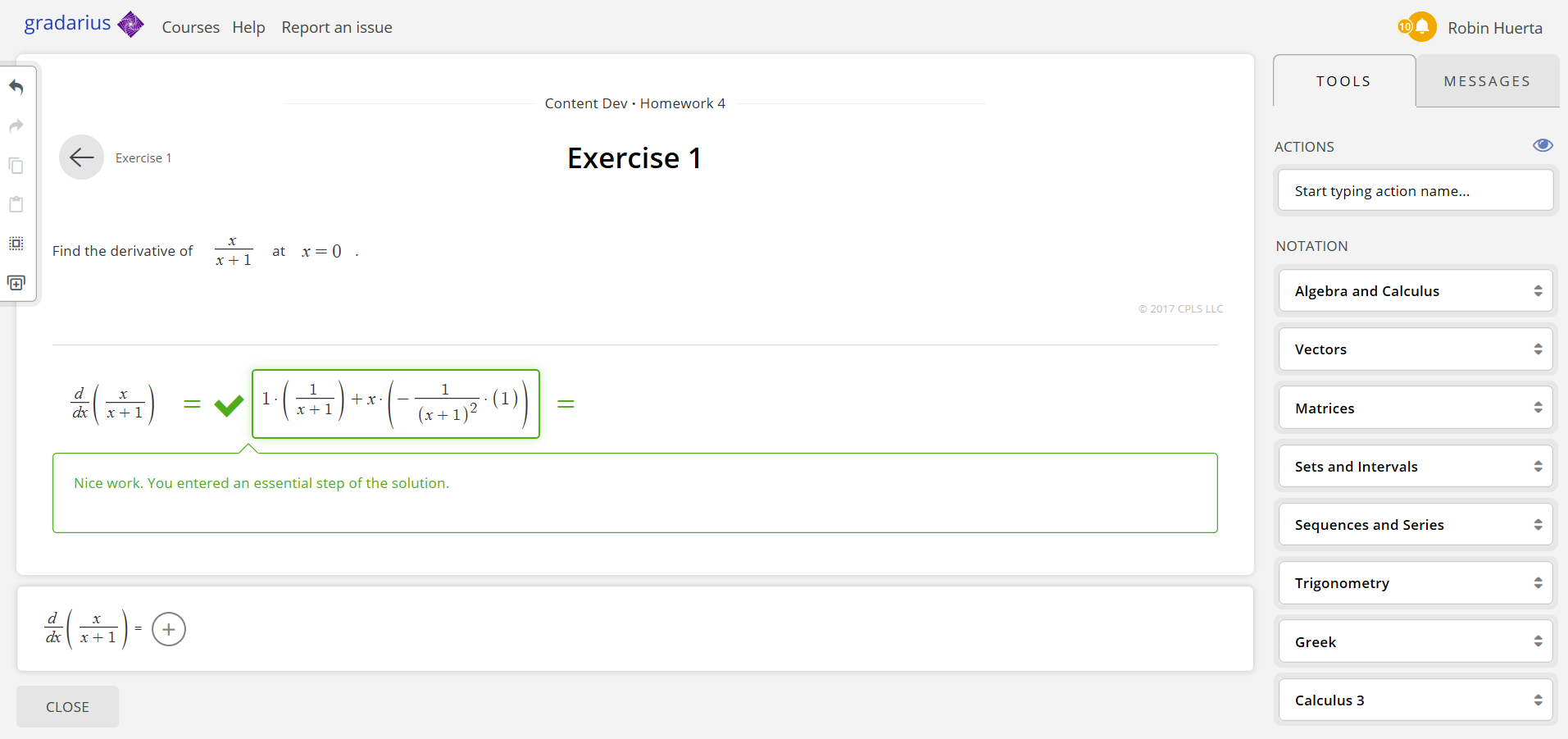 Welcome to the Gradarius Calculus Learning Platform! Gradarius allows students to enter their work and receive feedback in real-time. There are many ways that Gradarius improves on the traditional learning platform style of problems.
