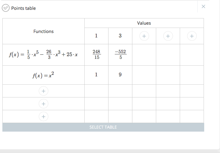 If you like to compute the values of multiple functions at multiple points, please use "Create new table action":